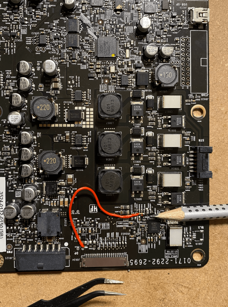 – Die Ursache ist eine fehlerhafte LED-Leiste. Diese muss ersetzt werden, wozu ich eine LED-Leiste für ca. 60€ aus Fernost bestellen & das verbaute Display im Display komplett auseinandernehmen müsste.